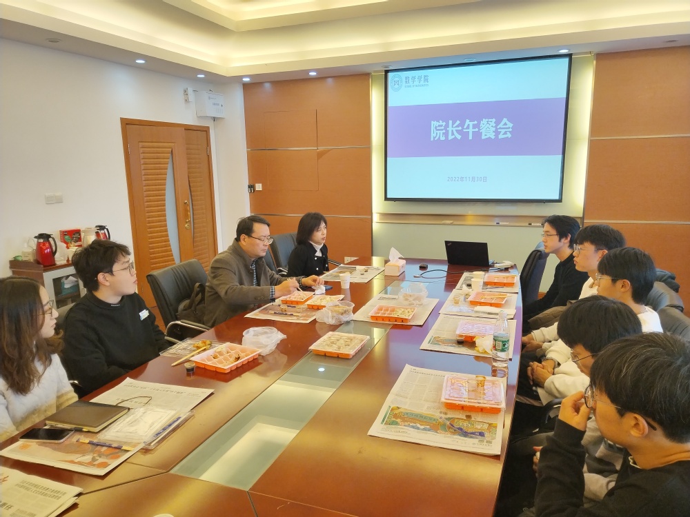 11月30日中午,数学学院在理学楼517会议室开展院长午餐会活动,院长王春武与学生代表、所联系学生共进午餐,深入关心学生学习生活。院党委副书记周佼佼、团委书记戚月、辅导员共同参加活动。