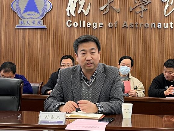 孙占久对数学学院一行的到来表示热烈欢迎,并对数学学院在航天学院科研攻关上提供的帮助和支撑表示肯定。他详细介绍了航天学院的发展历程、科学研究以及人才培养情况,并对双方支部的共建合作充满期待。