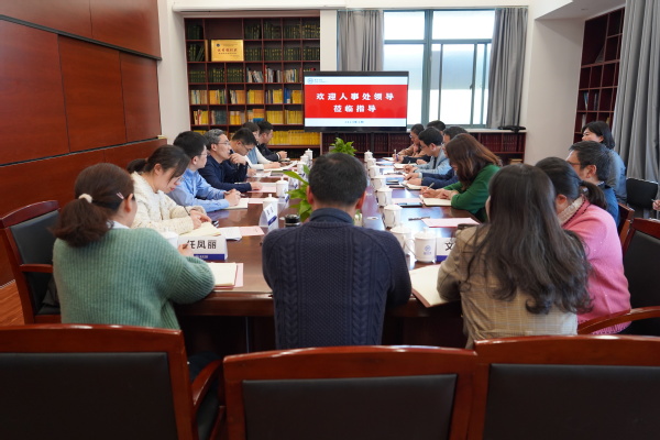 数学学院院长王春武对人事处领导一行的到来表示热烈欢迎,并从学院师资队伍结构、师资培养建设、引进人才情况以及人才工作困惑等进行了汇报。他强调,在学校“一流工科、卓越理科、精品文科、特色交叉”的高标准学科布局下,学院多措并举做好人才引育工作,一是进一步凝练六大科研团队方向,聚焦团队需求和学院发展规划,成立“青年数学‘家’”组织,联合各科研团队优秀青年人才,建立起与中国科学技术大学等知名高校的校外青年人才网络,把“全员引才”与“靶向引才”相结合,拓宽引才渠道;二是通过“以才荐才”与“学术荐才”相结合的方式,柔性引进新加坡国家科学院院士、南洋理工大学代理校长林杉教授为我校名誉教授,激活学院“以才引才”的正向效应;制定《数学学院人才引进奖励暂行办法》,开通朋辈推介、校友直荐等人才互荐方式。此外,王春武还结合学院人才引培工作的困惑,同与会人员进行了交流。