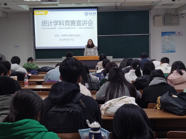 为促进学生对知识的理解与运用,营造浓厚的竞赛氛围,3月17日中午,数学学院于一号楼10109教室举行全国大学生统计建模大赛、大学生市场调查与分析大赛、“泰迪杯”全国数据挖掘挑战赛等三项竞赛宣讲会,数学学院概率统计系副主任袁泉主讲,团委书记戚月主持,全校各学院百余位同学参加。