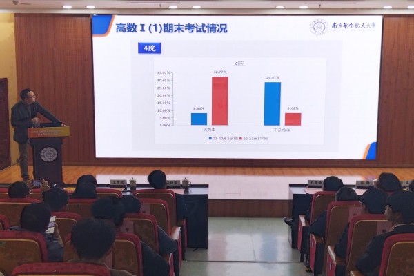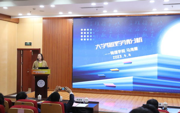 数学学院朱晓星、物理学院马海霞及机电学院陈旭玲3位老师分别做《高等数学》、《大学物理》、《工程图学》学情分析。老师们围绕期末考试成绩,从不同校区、不同学院、不同学科、不同课程等级等维度分析同学们成绩分布和学习状态。详实的数据,多角度的分析,帮助学院全面、详细了解学生的课程学习情况和学习风气。老师们还就如何促进公共基础课与开课专业更好融合、如何更好发挥学支作用进一步提升学生学习水平提了意见建议。