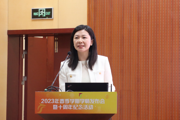 校学支常务副主任、数学学院党委副书记周佼佼做十年工作总结报告。她从学支的初心和初创谈起,以精准辅学为宗旨,构建了“大班导学、中班助学、小班精学、一对一辅学”的多层次学业帮扶体系,向全校同学提供个性化、多渠道、实践性的学业支持辅导。十年里通过资源、机制、平台三位一体建设,不断发展、完善。现已开设辅学课程覆盖所有学院,十年服务学生超过11万人次,已经成为工作品牌和特色。