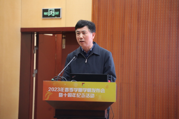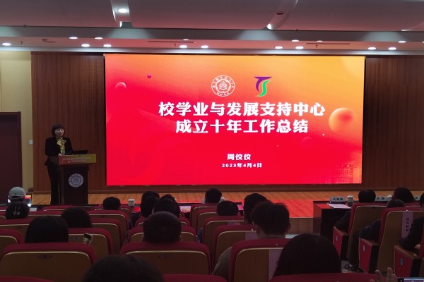 4月4日,校学业与发展支持中心2023年春季学期学情发布会暨十周年纪念活动在将军路校区图书馆一楼报告厅举行。教务处处长孔垂谦、教师发展与教学评估中心主任朱建军、学生处副处长张跃及数学学院党委书记许静、院长王春武,各学院副书记、副院长以及大一、大二年级辅导员参加活动。活动由张跃主持。