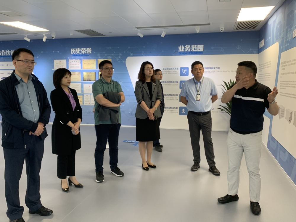 贺昊、顾志国陪同一行人先后参观了企业办公区域和展厅。贺昊简要介绍了公司的发展历程、主要业务及所获荣誉。南京捷希科技有限公司是一家全球领先的专业为ICT领域提供一站式射频、能源和自动化测试解决方案的高科技公司,公司主营业务是为全球的运营商、主设备商、移动终端商、芯片商、检验检测机构和工业互联网等众多领域的客户提供高品质的产品和服务。