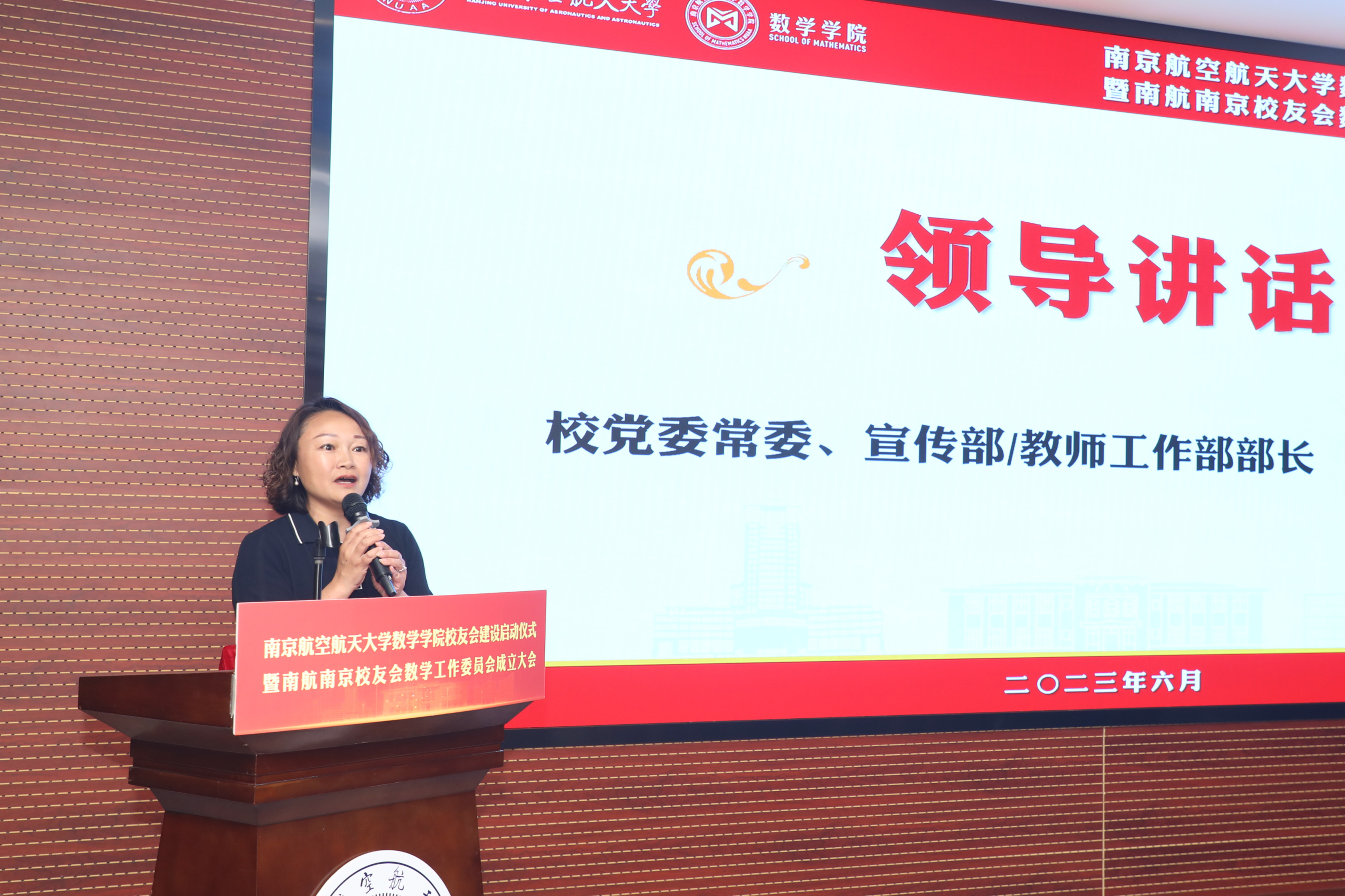 大会最后,王晖总结讲话。她首先代表学校对南京校友会数学工作委员会的成立表示祝贺,她深情回忆了曾经在学院工作的美好时光,为数学学院校友所取得成绩感到骄傲。对新成立的南京校友会数学工作委员会,她提了三点希望,一是心怀“数院事业”,打造“情感共同体”;二是书写“南航情怀”,打造“文化共同体”;三是牢记“国之大者”,打造“事业共同体”。