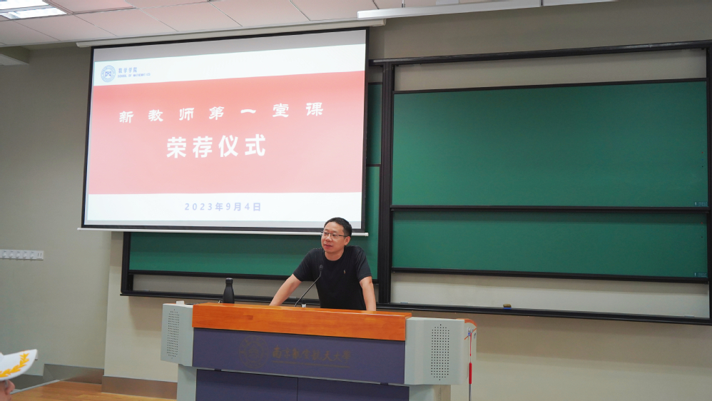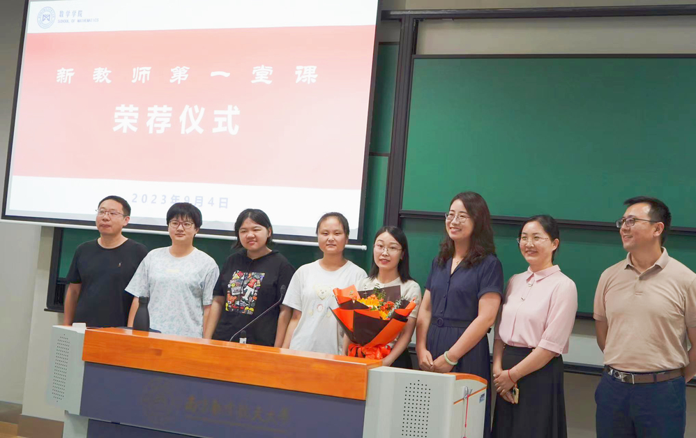 为增强新入职教师的职业责任感和幸福感,不断推动学院师德师风建设,9月4日上午,数学学院党委书记许静、院长助理吴健、概率统计系主任蒋辉、大学数学教学与研究中心主任朱晓星以及教学办老师们为新教师索永强举办了“第一堂课”荣荐仪式。