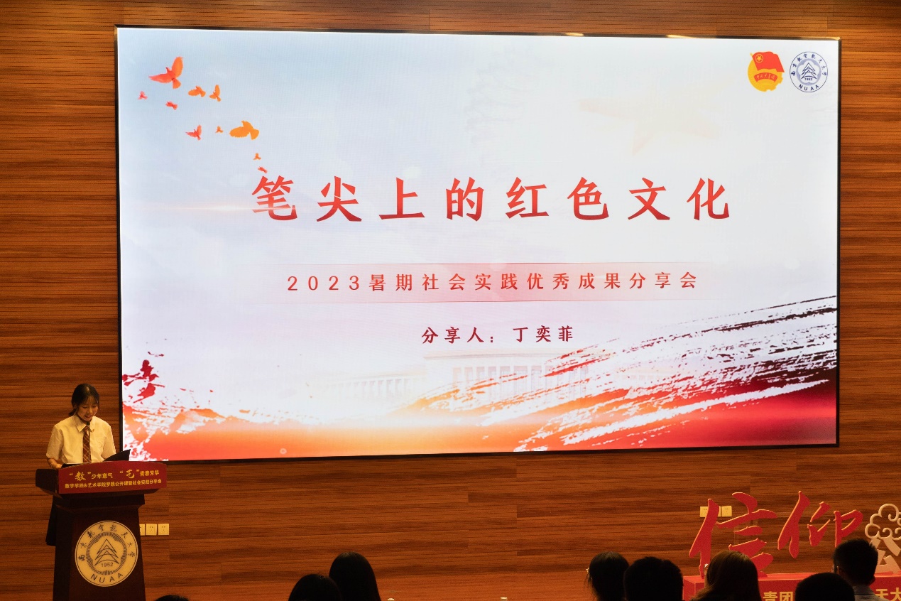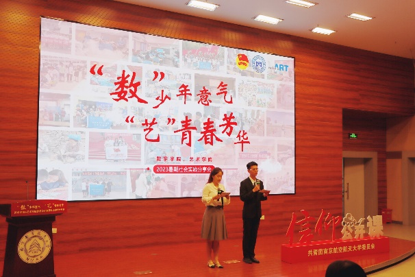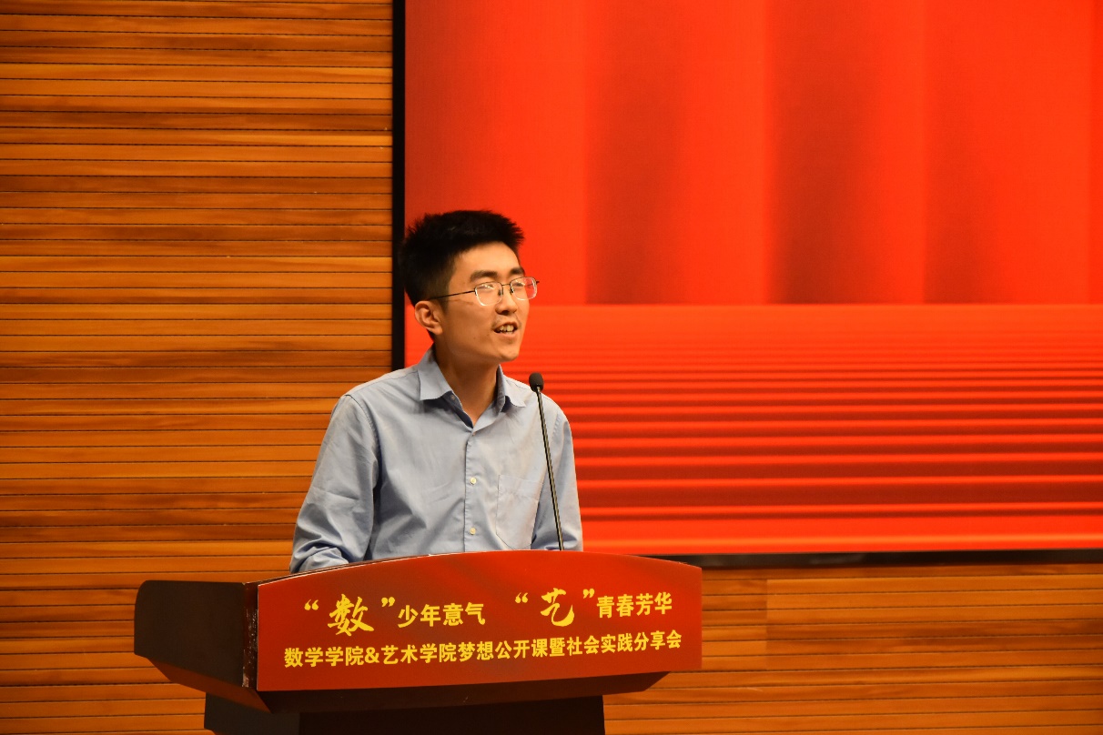 本次分享会以“‘数’少年意气,‘艺’青春芳华”为主题,分为“追寻足迹,绘述红色基因”、“携手逐梦,用心传递温暖”、“见证发展,感悟时代荣光”三个篇章,展现出数学学院和艺术学院的学子们强国有我、青春有为的使命担当。