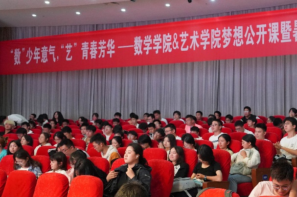 10月18日,数学学院、艺术学院在一号楼4楼报告厅举办“‘数’少年意气,‘艺’青春芳华”梦想公开课暨2023暑期社会实践成果分享会。校团委副书记王洋,数学学院党委副书记周佼佼,艺术学院党委副书记王宇宁,两个学院团委书记、专兼职辅导员、社会实践团队以及2023级本科生、预科生参与了此次活动。