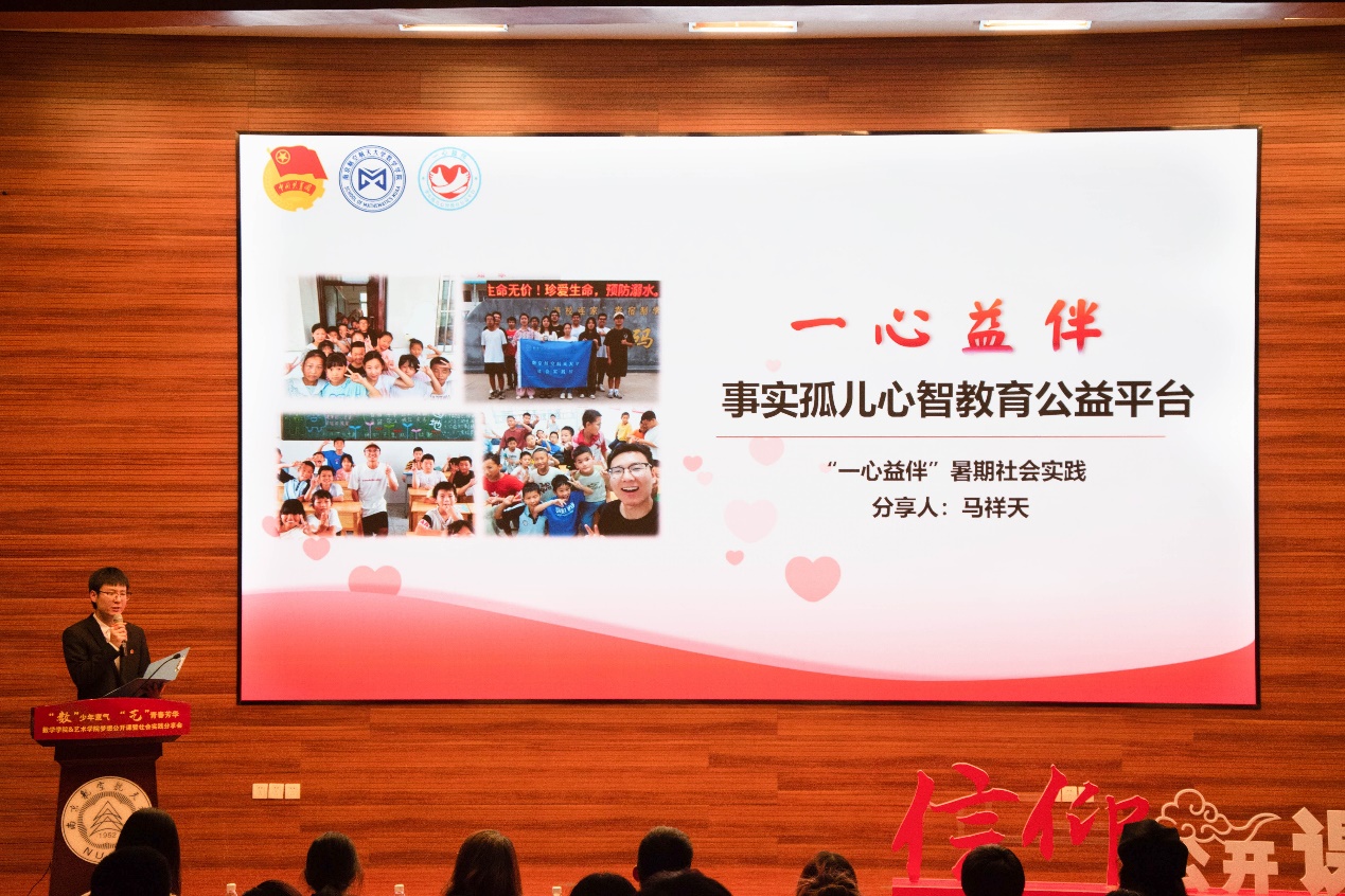 在“携手逐梦,用心传递温暖”篇章,数学学院的学子们充分利用团队成员的数学专业学科特长,寓教于乐,用爱心、细心、耐心,为基层教育事业添砖加瓦。“数”声琅琅团队前往南京市雨花台区基层社区,在教育中添加有趣的元素,让数学摘下枯燥无味的面具,在游戏中尽显数学之美,充满趣味而又不失严谨,激发孩子们对基础学科的学习兴趣,让创新的种子在心中生根发芽。“坚守·反哺”支教团积极响应“乡村振兴”的号召,前往江西上饶、四川自贡等城市的中小学,别出心裁的设计,缤纷多元的课程,点燃孩子们对天空的向往与热爱;成员还结合当地特色,围绕非物质文化遗产和红色教育基地进行实地调研,守护非遗瑰宝,传承文化之魂;重温伟大征程,追溯红色印记。“一心益伴”实践团队关注到“事实孤儿”这一类困境儿童,他们走进江苏淮安对事实孤儿成长困境展开调研,直击当前社会帮扶模式的共同痛点;并严格选拔培训大学生志愿者,为事实孤儿们铸就爱与希望的温室,让爱意的阳光温暖人生的寒冬。