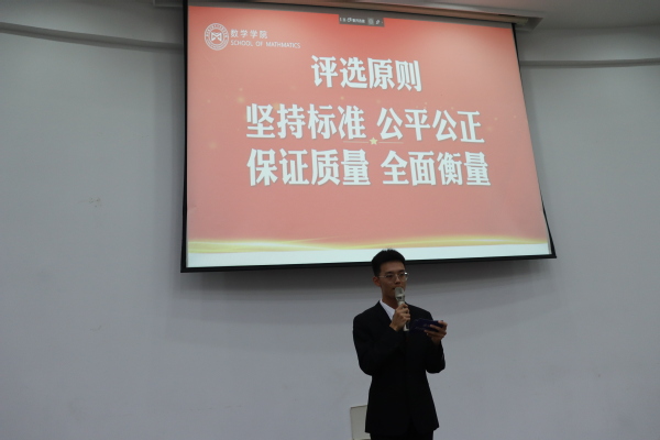 根据学校、学院评优评奖相关办法,经学生自主申报,共有13名学生参加公开答辩。同学们的汇报内容涵盖思想道德修养、学业水平表现、科创项目成果、活动竞赛佳绩、社会实践感悟等方面。他们精彩的答辩充分展现了数学学院优秀学子勤奋务实、创新进取、追求卓越、全面发展的精神风貌。