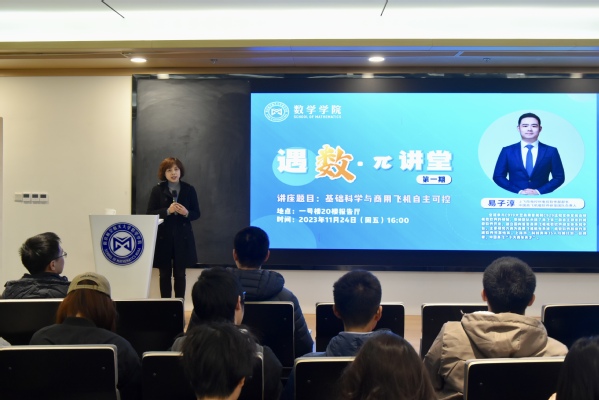 周佼佼对易子淳接受学院邀请、专程“送课”表示感谢,并介绍了学院创设“遇数·π课堂”的初衷。她提到,为帮助同学们更加懂数学、爱数学,“增强专业认同、提升专业热情、开拓专业视野”,学院创设了该系列活动,邀请各行业、领域专家做客讲堂,带领同学们不断感受万物皆数的魅力。希望同学们不断汲取新知、增长本领,勇担基础学科人的创新使命。