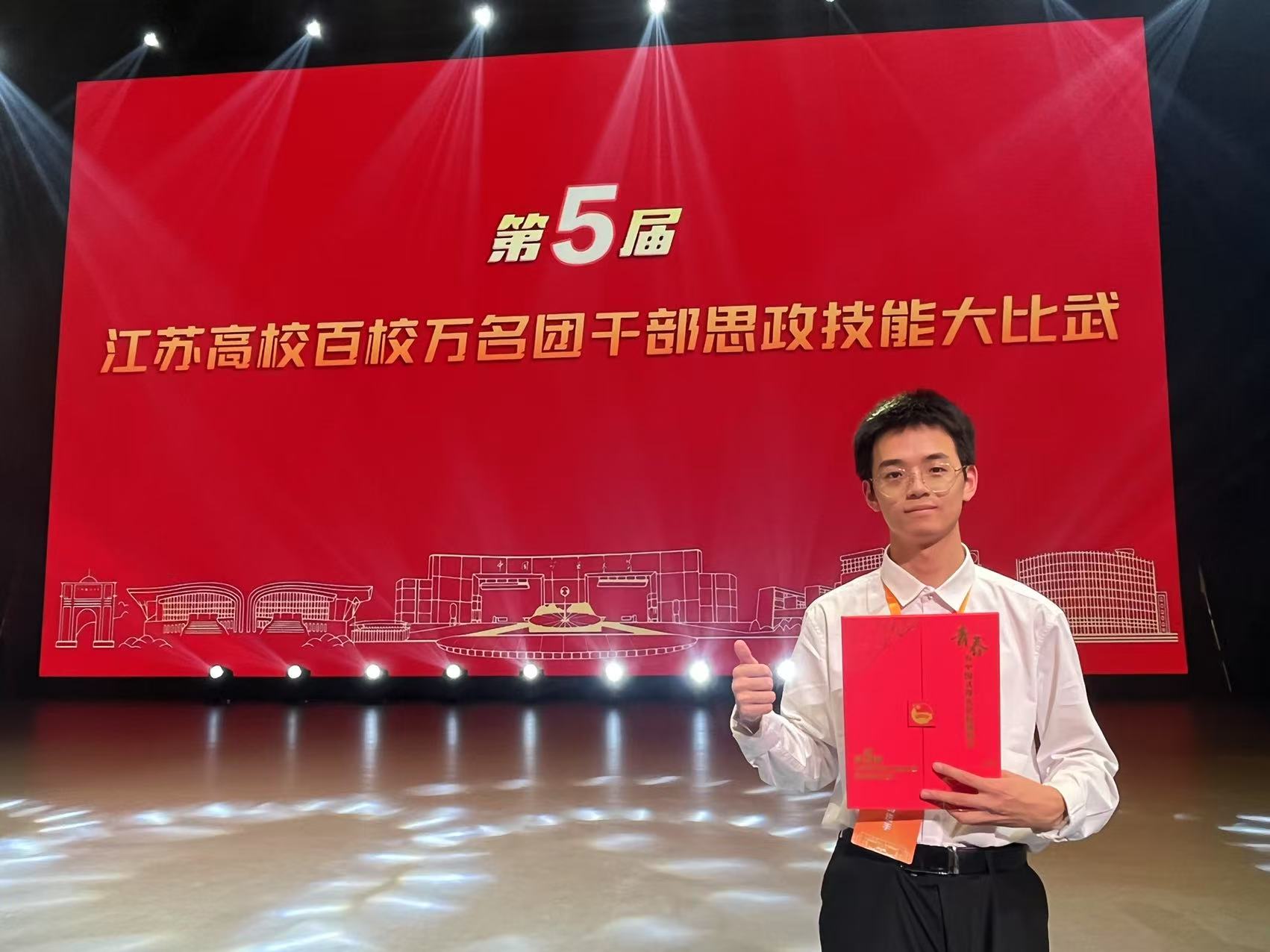 近日,由共青团江苏省委、中共江苏省委教育工委、江苏省社会科学院、江苏省学生联合会共同主办的第五届江苏高校百校万名团干部思政技能大比武在中国矿业大学落下帷幕,数学学院2023级信息与计算科学专业本科生徐瑞霖斩获最高荣誉特等奖。
